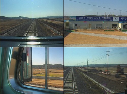 単線の線路に並行するように複線化工事の路盤が続きます。気動車路線としての京義線もあと数年と実感させられます。