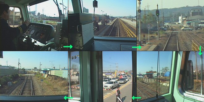 出発待機中の運転室にイソウロウ。車内のチェックを終え、戸閉めを行って発車します。都羅山駅に列車が着いた時はホームが観光客で賑わって実感がありませんでしたが、駅長さん,運転士さん,車掌さんと鉄道スタッフのみになると憲兵さんが見張りを絶やさない緊張感の有る本来の風景になります。この地域が軍の管轄と言う事がひしひしと伝わり、まさに「軍人さんに直接守られながら仕事をしている民間人」と言う状態です。戦争が終わっていない現状を体で知らされます。